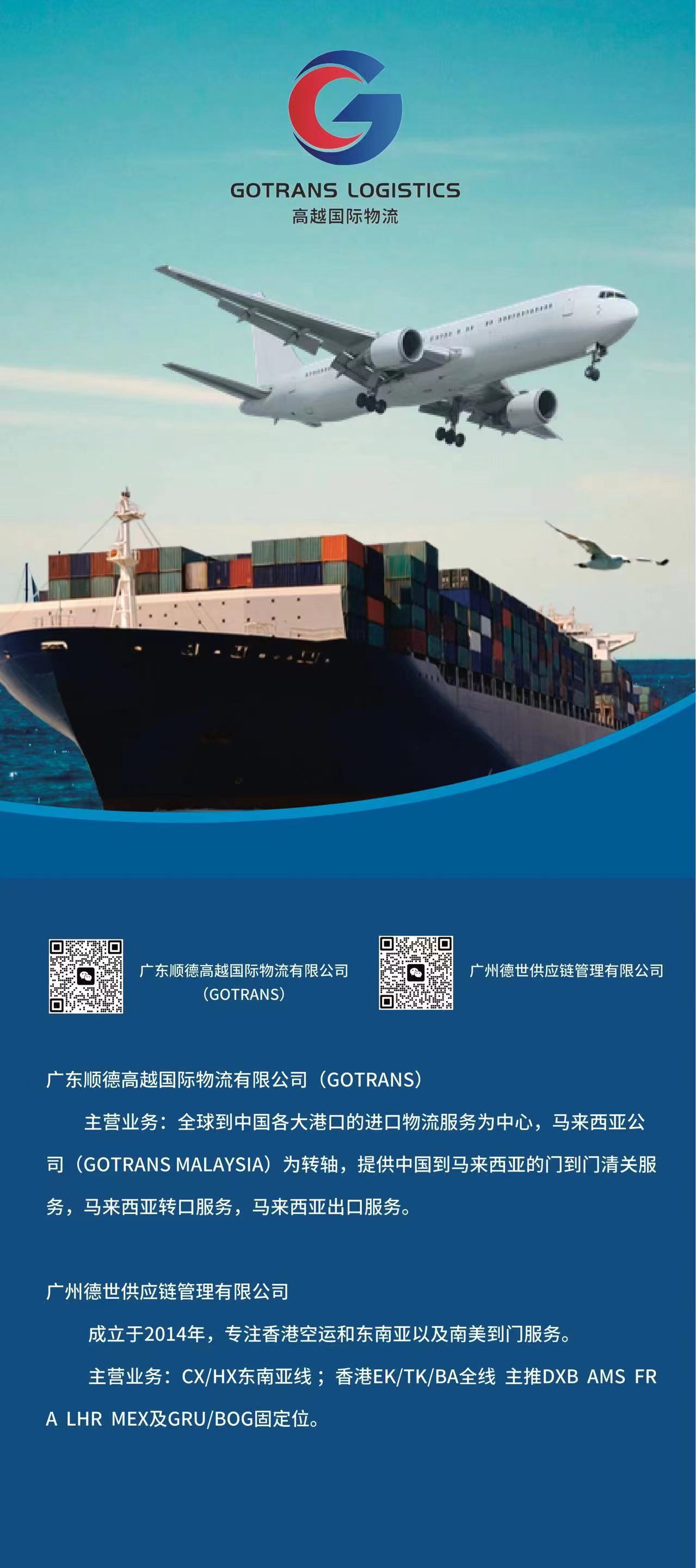 广东顺德高越国际物流有限公司 2024-05-07 佛山市顺德区跨境货运代理协会 上一条顺德跨境货运代理协会会员名册 下一条【政企联动 助力跨境出海】顺德区委常委、统战部部长梁伟沛带队莅临顺德跨境货运代理协会副会长单位—深圳市八方供应链综合服务有限公司!